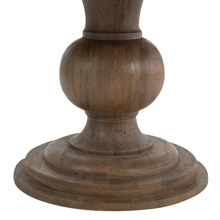 • Crafted from durable mango wood, this round dining table features a stunning turned colonial-style pedestal base. Its semi-gloss finish enhances the natural wood grain, adding warmth and character to any dining space.