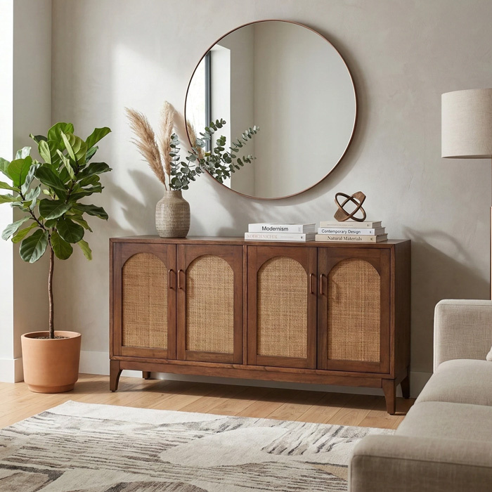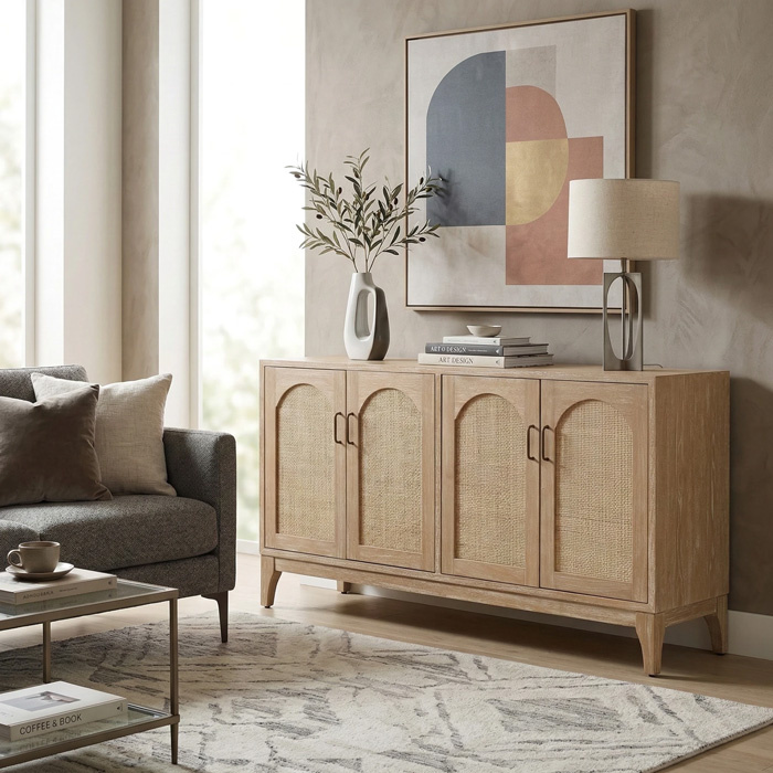 Crafted from solid and engineered wood with an Oak veneer finish.