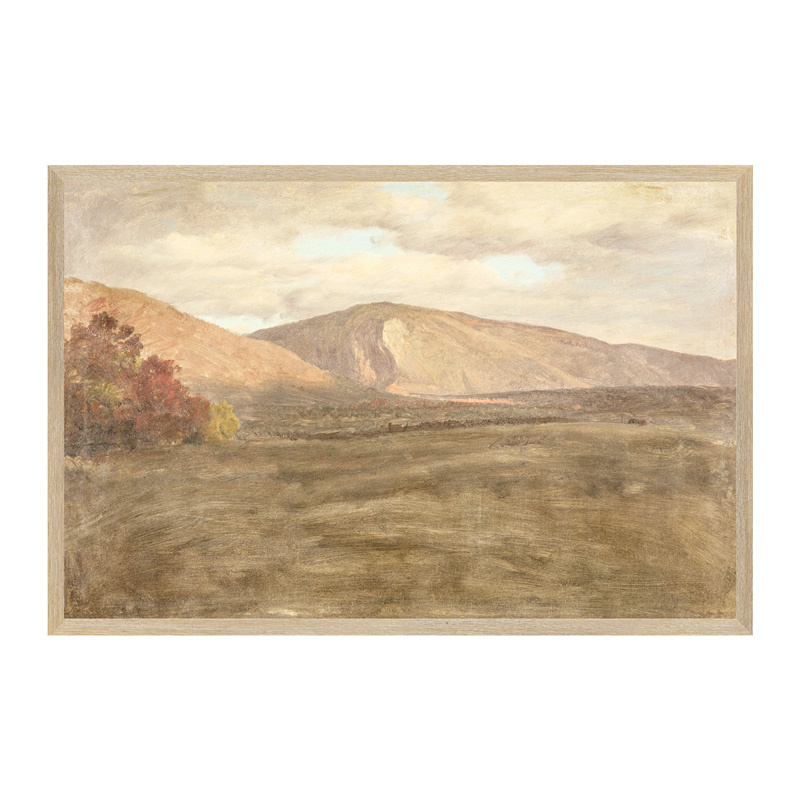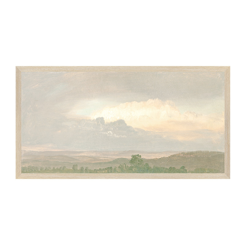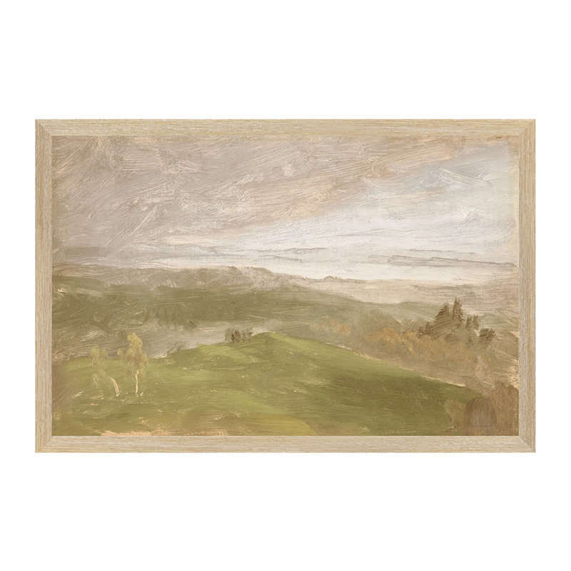 Framed giclée printed canvas on board, light wood frame.