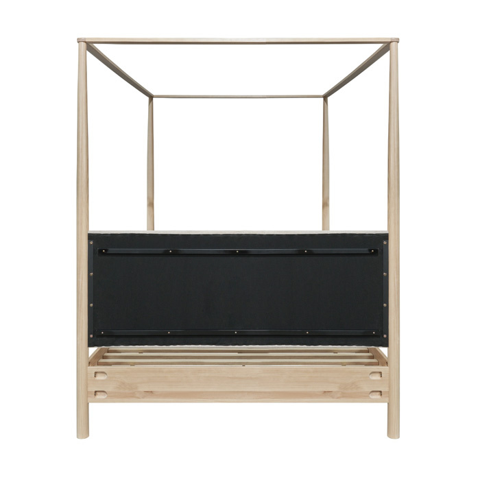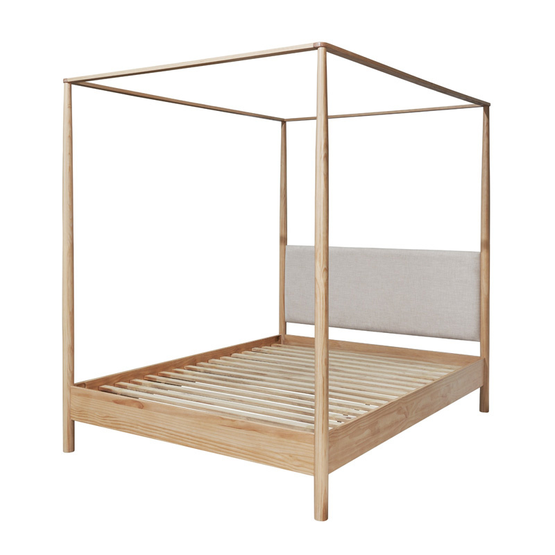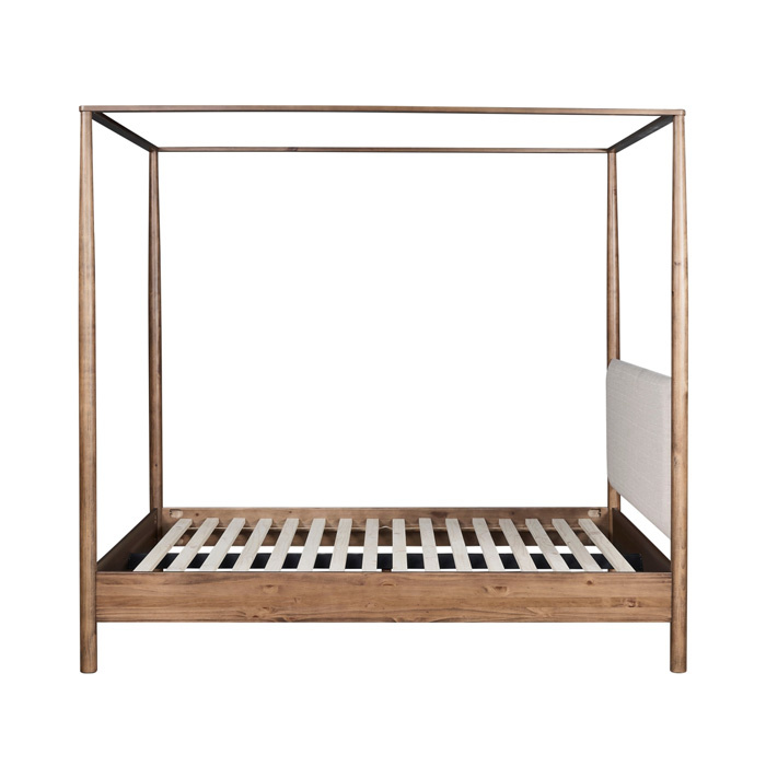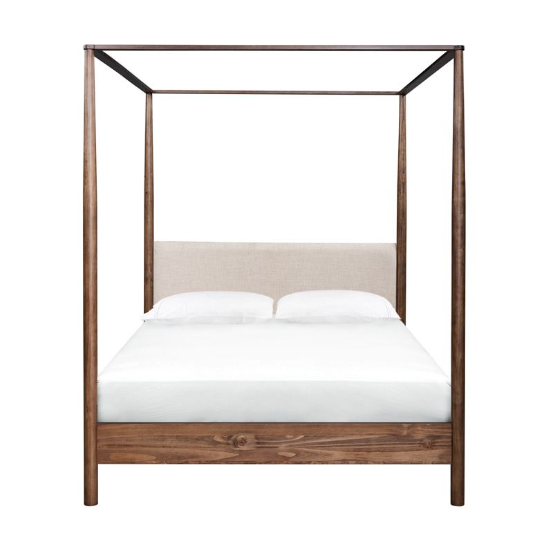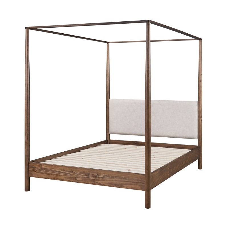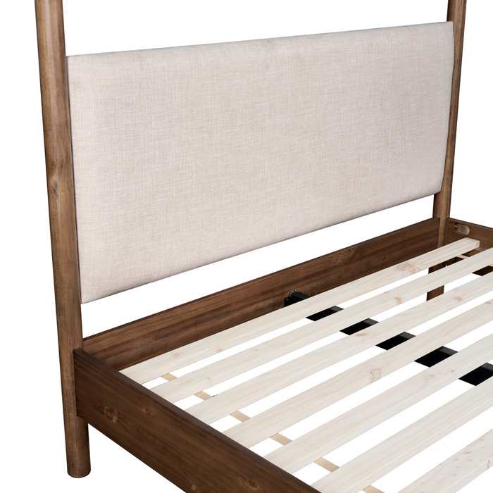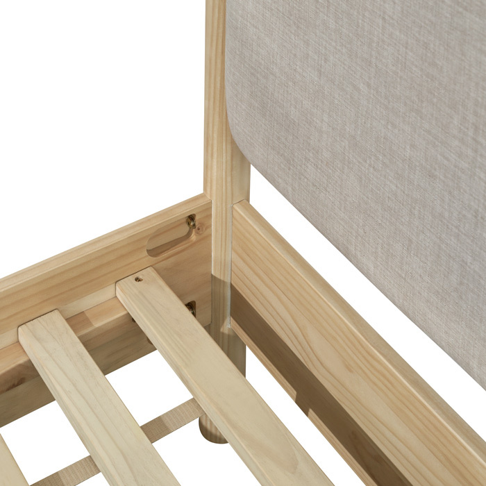 Only available as Queen. Fully slatted, box springs not required. Headboard fabric varies slightly - for the Natural, it’s more grey while the Walnut is more oatmeal in tone.