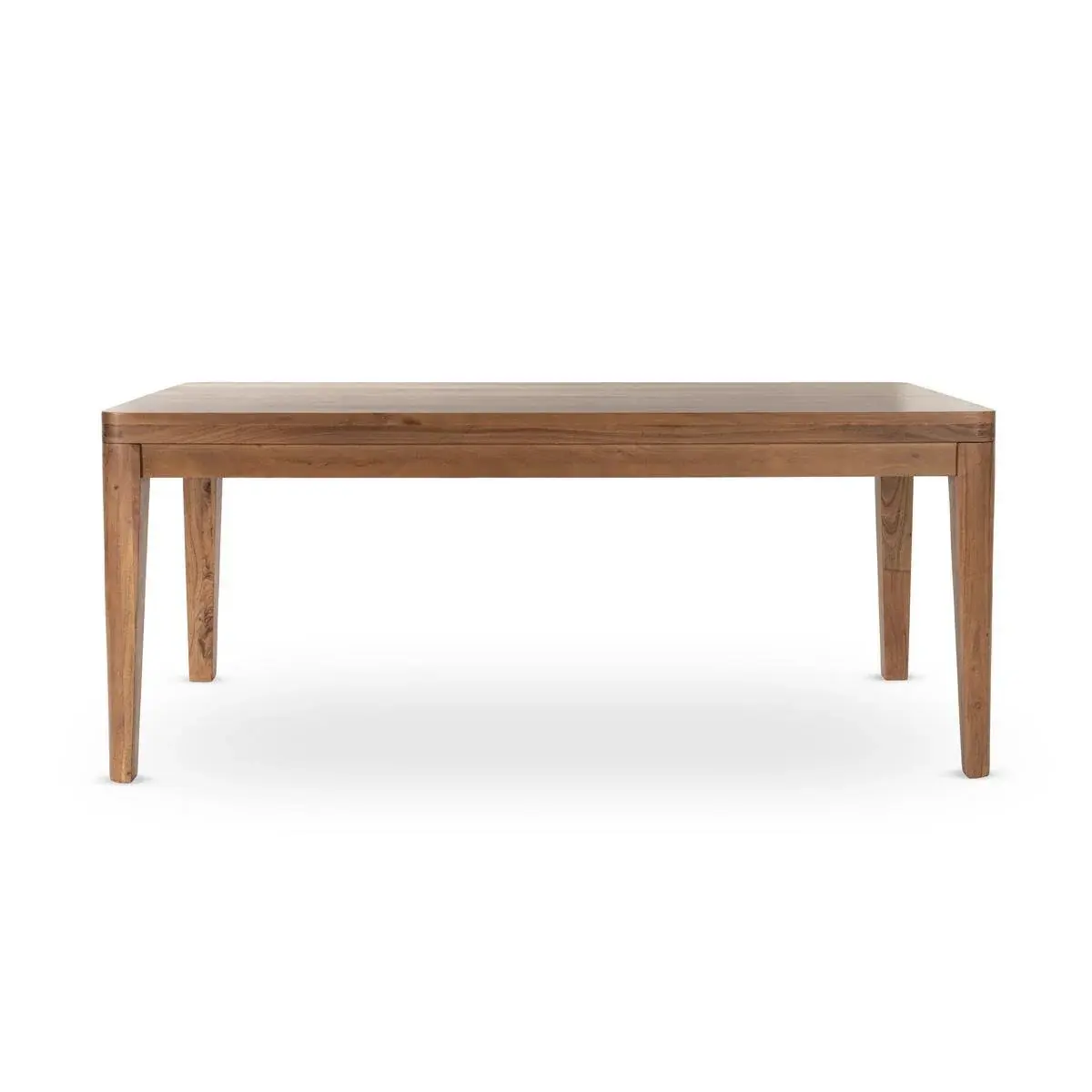 • The natural finish highlights the finger joint, flushed top, and tapered leg detailing of this beautiful Acacia wood table.