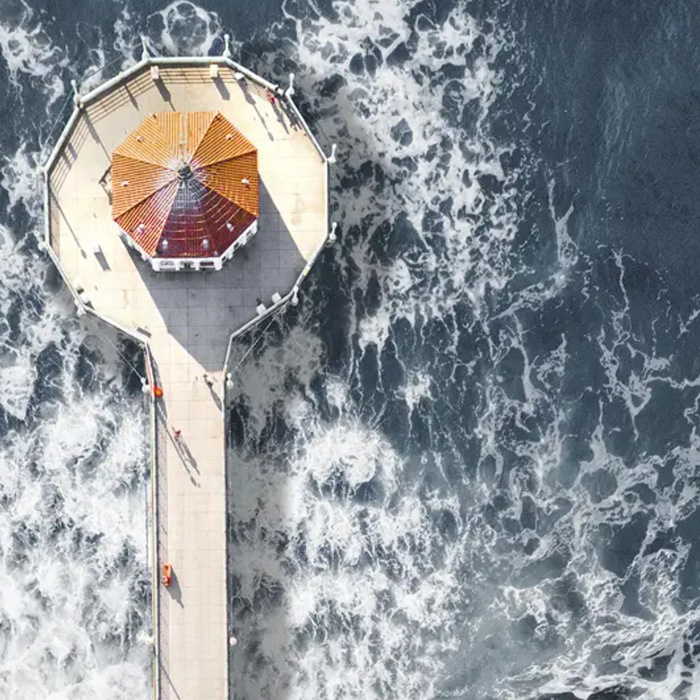 PIER FROM ABOVE FRAMED PRINT